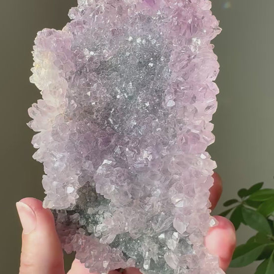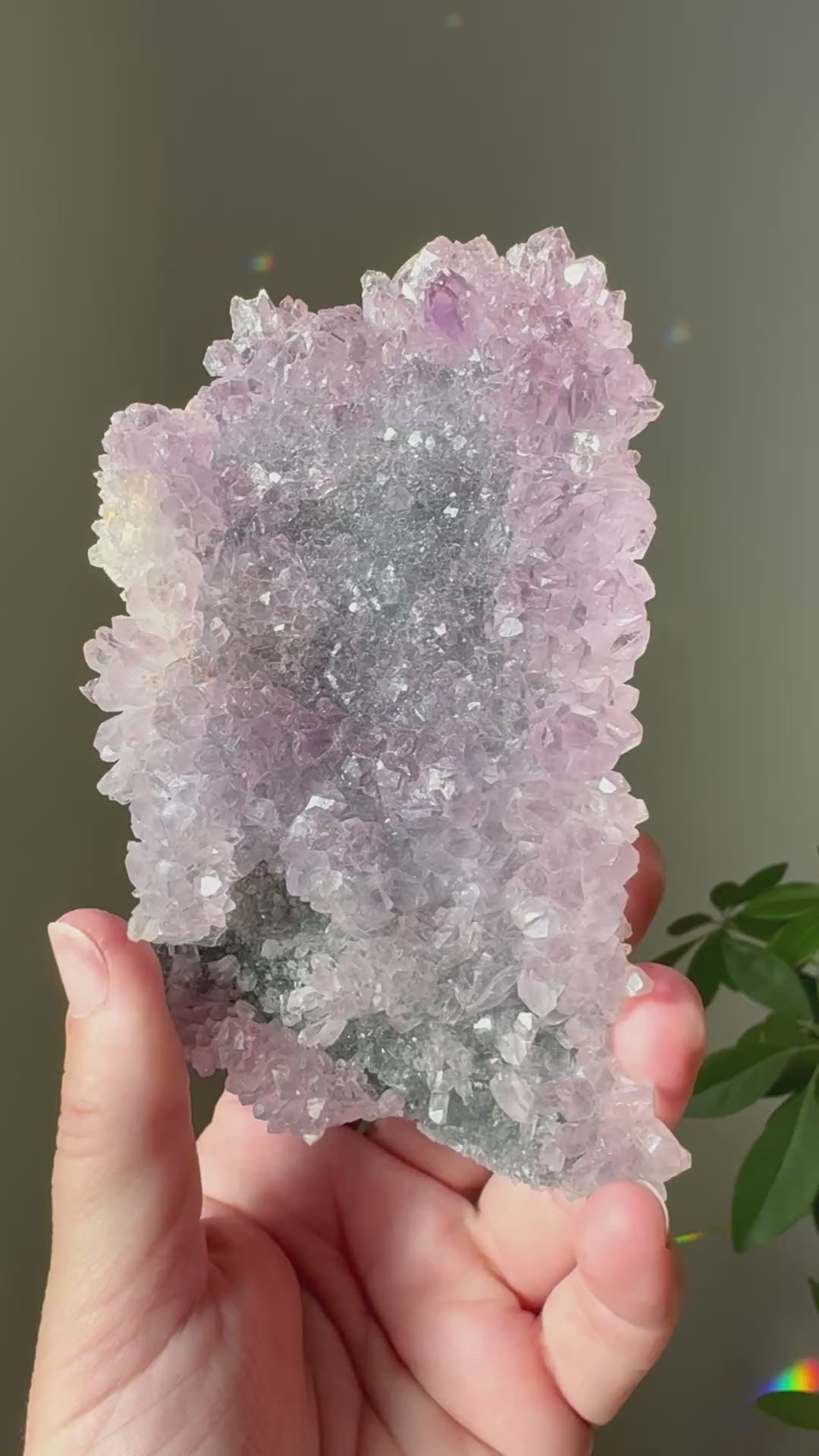 Bring home a truly enchanting piece of natural art with this Amethyst Flower, a radiant cluster of tiny, sparkling crystal points blooming outward like a mineral blossom. Each piece is completely unique, formed over thousands of years as amethyst crystals fanned out in delicate, flower-like patterns. With its vibrant purple hues, shimmering luster, and intricate structure, an Amethyst Flower adds instant beauty and high-vibrational energy to any shelf, altar, or display.