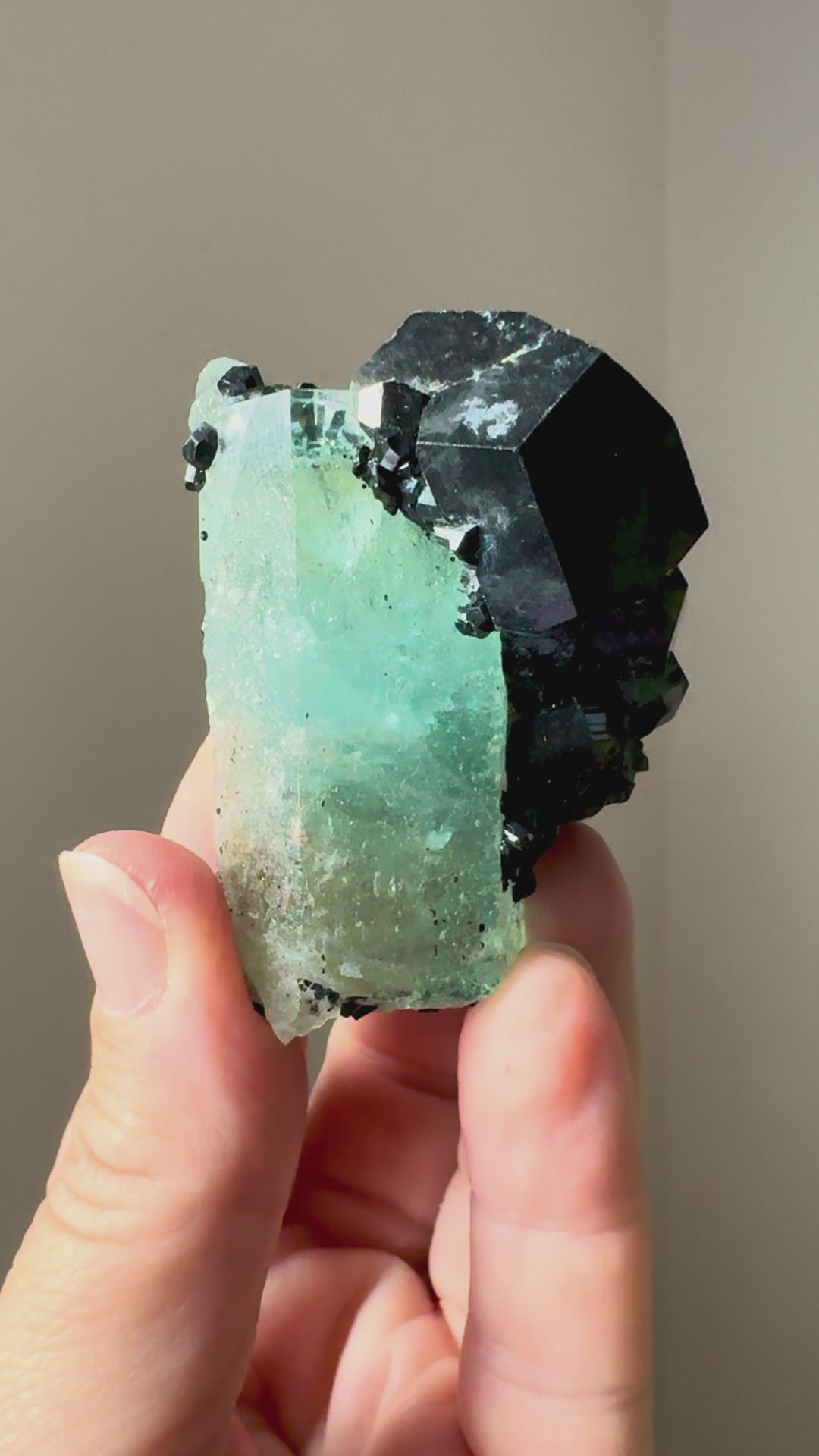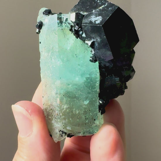 Invite balance, protection, and serene energy into your space with this Aquamarine and Black Tourmaline specimen.
