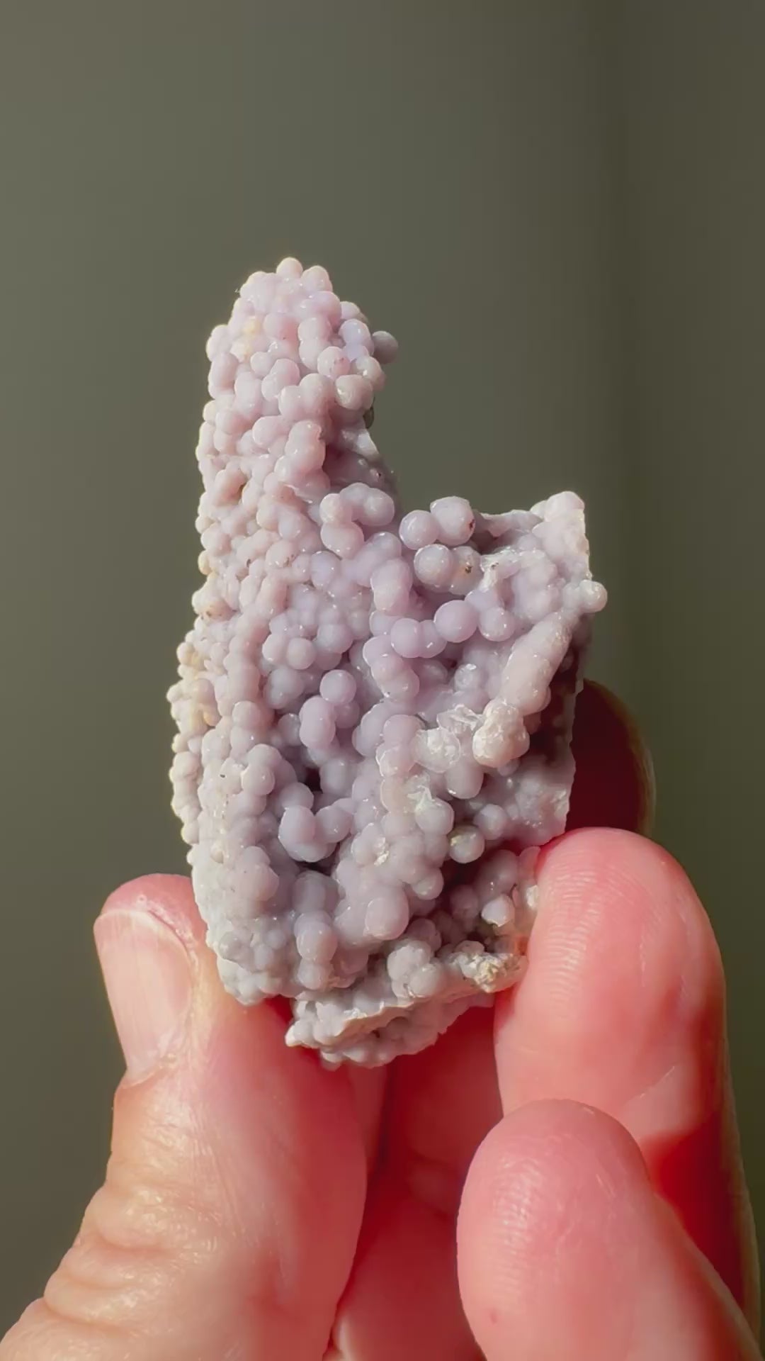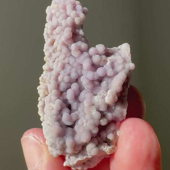 Experience the playful elegance of Grape Agate, a unique formation of tiny, botryoidal chalcedony spheres that resemble clusters of deep purple grapes. Each piece showcases rich, soothing shades of violet and lavender, with a natural, rounded texture that makes it both mesmerizing to observe and delightful to hold. Its compact, clustered form makes it perfect for display on desks, shelves, or meditation altars, where it can add a pop of color and an uplifting natural presence.