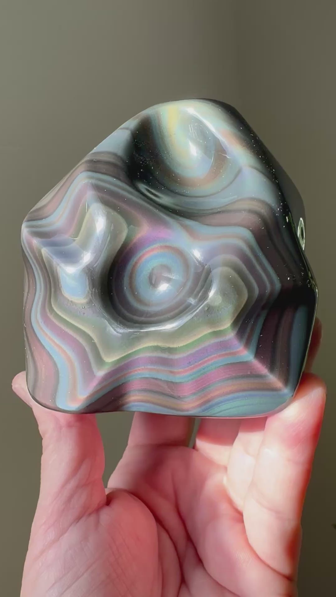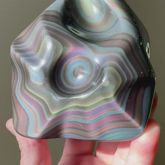 Rainbow Obsidian is revered as a protective and transformative stone, blending the grounding strength of obsidian with the uplifting energy of rainbow light.