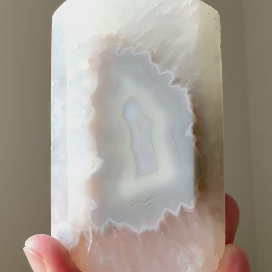 This Agate & Quartz Tower blends the stabilizing energy of agate with the amplifying power of quartz: